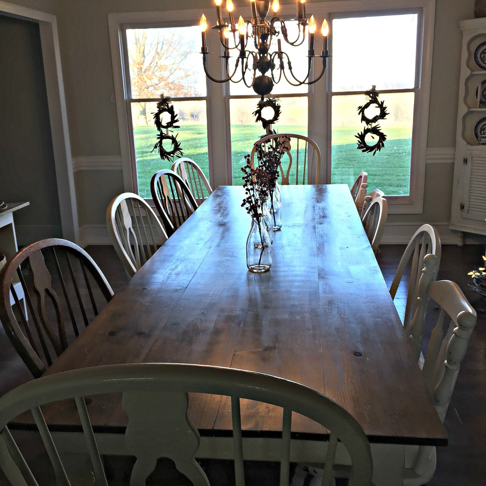 This is my dining room table. It is 10 feet long and seats 12 people.